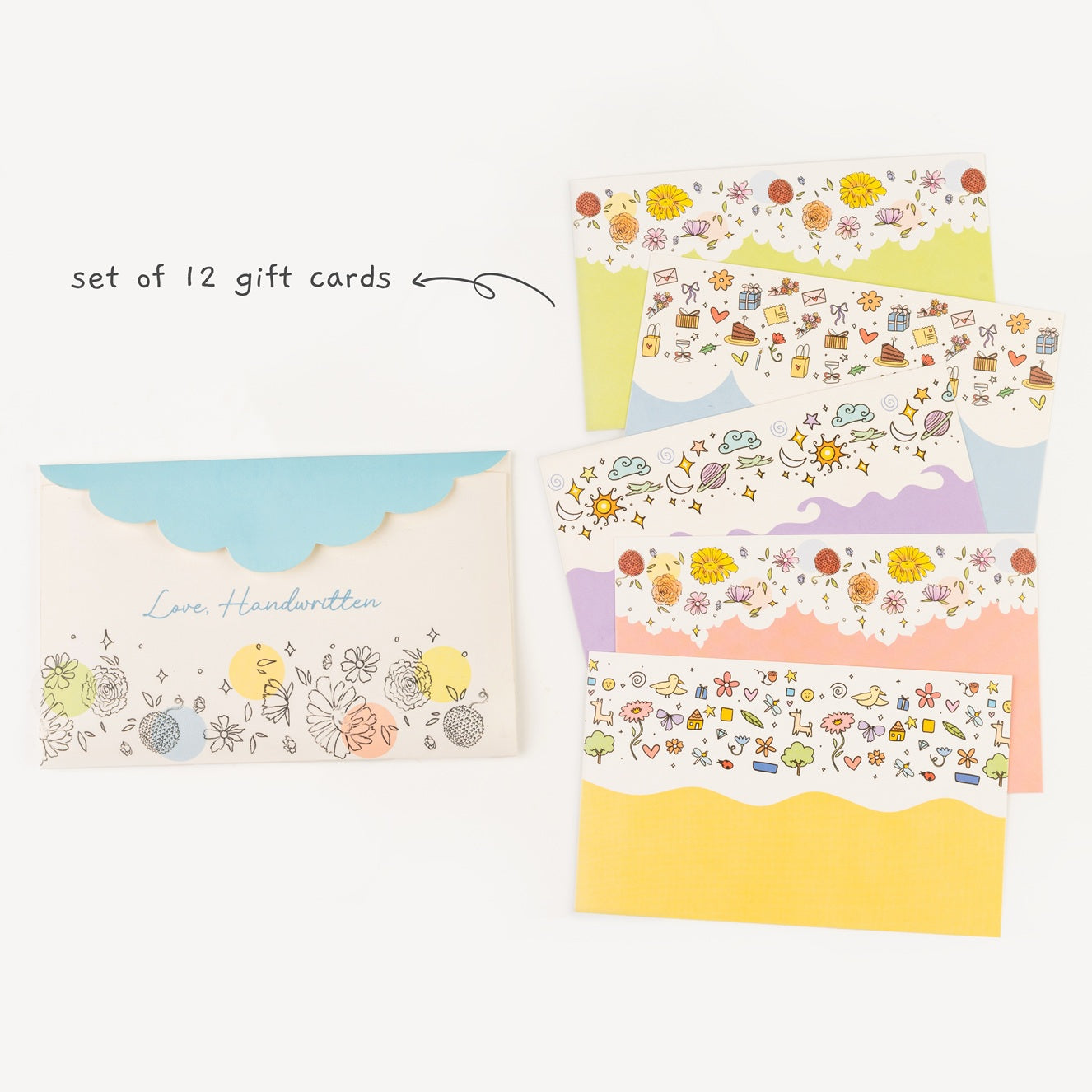 • Set of 12 hand illustrated gift cards